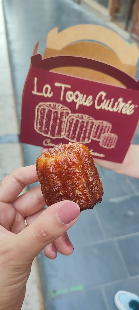 Quando fui pra Bordeaux, confesso que fiquei meio decepcionada com a cidade: era um sábado de verão e a cidade parecia morta. O centro era bonito, mas tinha uma rua principal e saindo dali já ficava tudo meio esquisito. Eu e o Gabs estávamos viajando pela França de trem e ficávamos só um dia e uma noite em cada cidade, e em Bordeaux o b&b que alugamos foi o pior e o mais caro de todos. Era afastado e péssimo, quente e cheio de mosquitos, acabamos dormindo apertados no sofá, enfim, acho que isso influenciou a experiência geral e o humor não estava muito bom. Mas o ponto alto foi comer canelé pela primeira vez: descobrir esse docinho compensou todo o perrengue.
